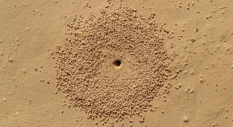 JA: Groundworks I-V focuses on the landscapes of southwestern USA and consists of four subtly animated aerial photographs of sites including open cast mines, abandoned WWII runways and industrial farms. The fifth element is a re-mastered edition of the 16mm film Excavators featuring ants building a nest in the sand.