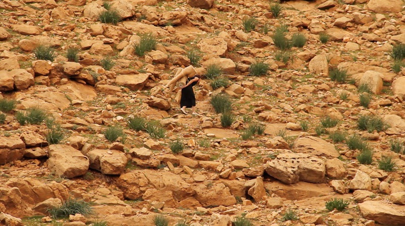MC: Yes, the Mediterranean is an incredibly peculiar region, really well discussed by David Abulafia in his latest book The Great Sea (2013), not just as a beautiful or interesting holiday destination, but for the complex socio-political frictions and friendships that connect and separate the countries that surround it and for the question of migration which is increasingly central to global politics, with ramifications extending far beyond the geographical confines of the region. All of the artists explored the idea of migration in some way. Silva's work, showing industrial areas in construction that connect Spain and Morocco like ports and ship-yards, alludes to the way in which migrant North African workers constitute a large part of the Spanish economic landscape, despite often living there unrecognized by the civil authorities. Abed's Sisyphean migrant appears to symbolize the condition of the migrant, never reaching a point of arrival, forced to start her arduous journey all over again with pitiless frequency. Boughriet's work brings the voices of the migrants, in Arabic and French, to the screen. They tell us their tales of travel and hope and trouble, while the starlings dive around freely. Hers is a humanist message about the need for freedom, influenced by her personal identity as a migrant – a French Algerian living in Paris – and all the constraints that signifies as well as her need to find solutions towards freedom through art.