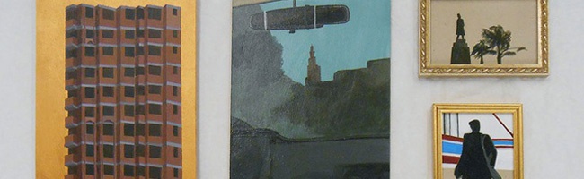 "This group of paintings is inspired by 'momentary images' or more accurately frozen moments taken from the contemporary cityscape of Egypt, as well as from personal records; old photographs found in family albums."