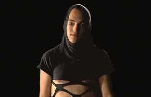 Sharif Waked's Chic Point presents a fashion show featuring clothing designs that reflect the popular parts of the body that are often searched at military checkpoints, placing the spectator in a position that paraphrases the soldier's gaze. |