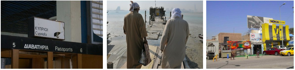 L-R: UNCOVERED Archive. Courtesy of Basak Senova; Mohammed Rashed Buali, The Good Omen, 2009, film still. Produced by Bahrain Film Production. Courtesy of Mohammed Rashed Buali; Caecilia Pieri, Baghdad, February 2011, photograph. Courtesy and © Caecilia Pieri.