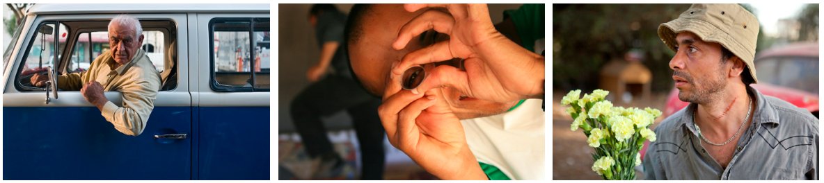 L-R: Sameh Zoabi, Man Without A Cell Phone, 2011, film still; Saaheb Collective, Eid, 2011, film still; Ihab Jadallah, Flower Seller, 2011, film still. All images courtesy of the artists and London Palestine Film Festival.