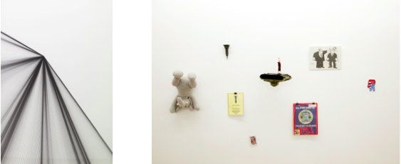 Timo Nasseri, I saw a broken Labyrinth I from the series O Time Thy Pyramids, 2012, ink on paper. Courtesy of the artist; Tom Bogaert, Empire state-building - failed attempts at state-building by imperialistic outsiders, 2012, installation view at Al Hoash Gallery, Jerusalem. © Al Hoash Gallery
