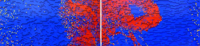 Image captions from top to bottom; Banner: Mahardhika Yudha, The Sound of Brahmaputra, 2010, Single channel video 3'45", 720 x 576 PAL (4:3). Courtesy the artist. Second image: Sama Alshaibi, 'Fatnis Al Gazirah' from the project Silsila, 2013, C-print Diasec, 140 x 250. Courtesy the artist and Ayyam Gallery. Third image: Sean Cordeiro and Claire Healy, T+85_red&blue_diptych, 2013, Lego, 113 x 149 cm [each panel]. Courtesy of Gallery Wendi Norris. Fourth image: Hans Op de Beeck, Room (7), 2011, Lamdaprint on Dibond, 110 x 180. Courtesy of Galerie Krinzinger and the artist.