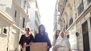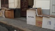 Cardboards are leaned against a wall in a street. They form a peculiar assemblage one can identify as makeshift shelters. Fashioned out of the detritus of consumer society, the cardboards have become facades. They conceal women who were probably repudiated by their families. One of them emerges from her 'house'...