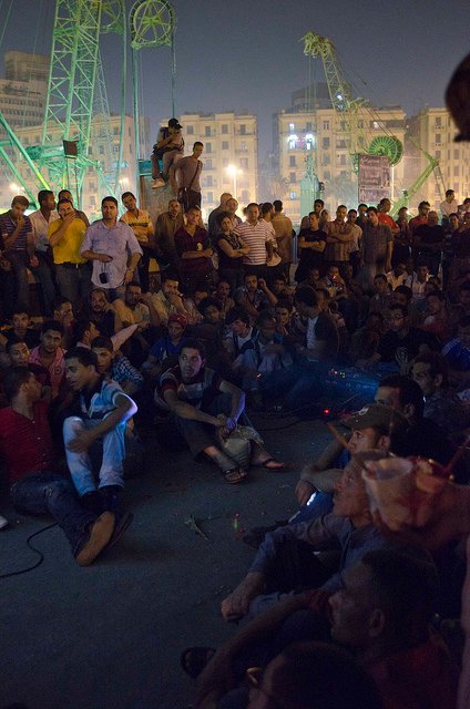During the July sit-in in Tahrir Square in Cairo, the site of the revolution at the beginning of the year, a group of artists and filmmakers lit up a corner of the square with an open-source 'revolutionary' screen: Tahrir Cinema.