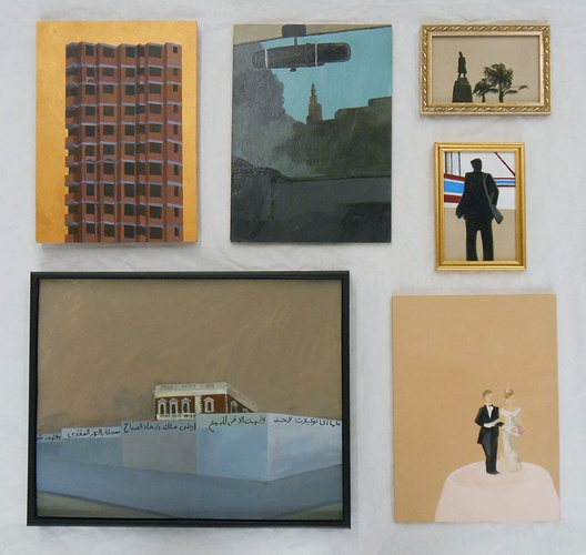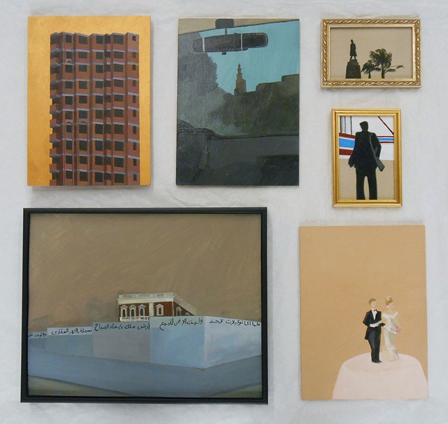The group of paintings is inspired by 'momentary images' or more accurately frozen moments taken from the contemporary cityscape of Egypt, as well as from personal records; old photographs found in family albums. I focus on the structure of buildings, popular culture and elements of the past that still exist in the present. I also see a clear link between the present socio-political conditions in Egypt and remnants of past influences, such as colonialism and the fear of espionage.