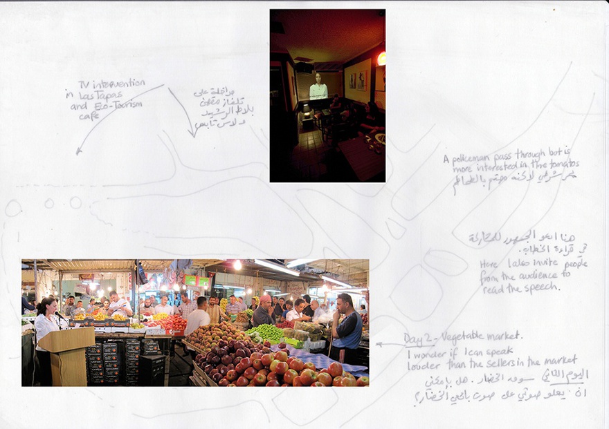 The one permit requested for the performance was from the Royal Film Commission to document/film the speech was granted, reluctantly, albeit in good faith (and a perhaps some sense of humour). Simultaneously, an announcement on flyers, posters and emails had been circulated, a gesture that caused some discomfort for both the Commission and state security who present themselves throughout the three-day intervention in various ways.