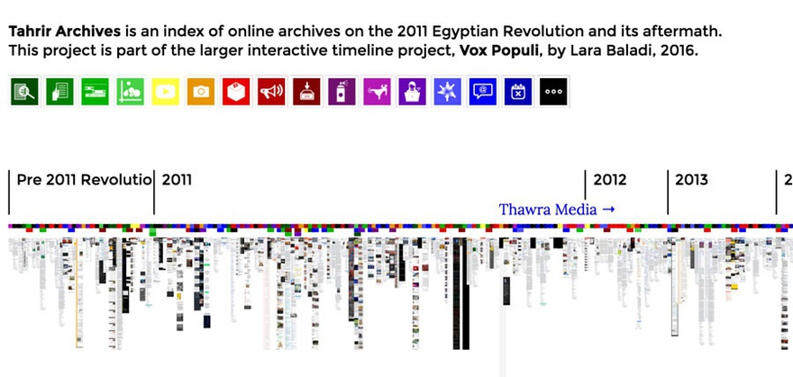 Published alongside the essay 'Archiving a Revolution in the Digital Age, Archiving as an Act of Resistance', this portal, Tahrir Archives, is an index of online archival projects, essentially English websites, on the 2011 Egyptian revolution.