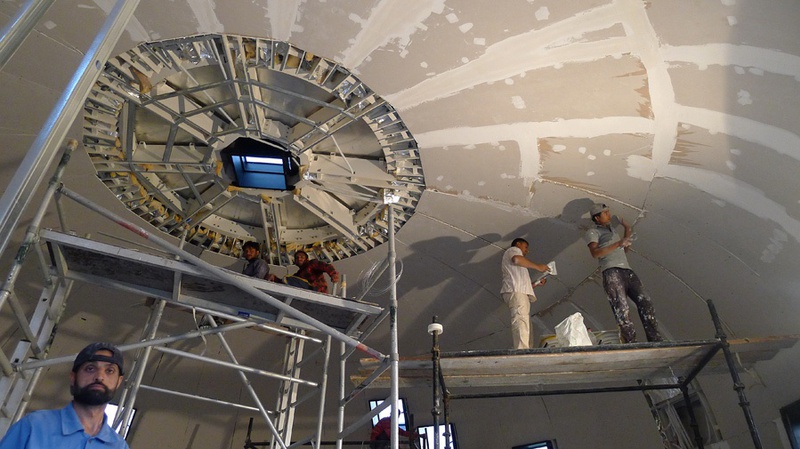 The objective of The Hierarchy of Being is to re-create the camera obscura effect within a large-scale sculpture. There are 15 windows inside the sculpture, each of which function via motorized irises. These irises have been programmed to open for ten minutes to allow the sunlight into the space, after which they will shut for 15 minutes to allow the viewer's eyes to adjust to the darkness and then images will be projected from outside the space. These images will not appear how we would ordinarily receive them, but rather, they will appear upside down. This process occurs through the pinhole features within the sculpture. Following this, the irises will slowly begin to reopen over a ten-minute period completing their 35-minute loop cycle.