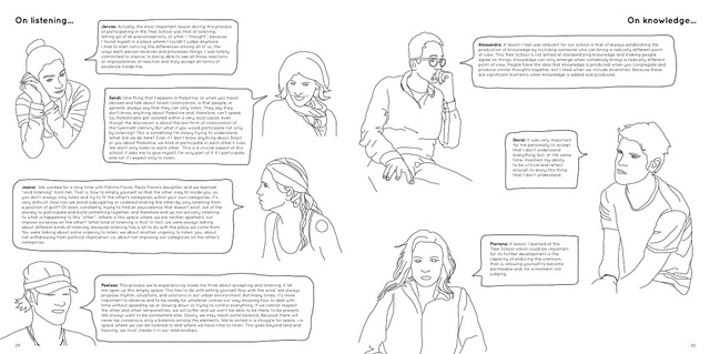The Tree School is a project initiated by two groups that share a common interest in decolonizing knowledge: Campus in Camps, an experimental educational program based in Bethlehem’s Dheisheh refugee camp in Palestine, and Brazilian-based art collective Contrafilé. The project, the publication for which we present here on Ibraaz, is part of the 31st Bienal de São Paulo, and aims to cultivate and produce knowledge that emerges from regions of the world that rarely speak to each other, despite the fact they have much in common. In this, The Tree School, which was formed so as to make new forms of knowledge production possible, presents an initiative that aims to bridge 'two worlds' that share similar urgencies in terms of social justice and equality.