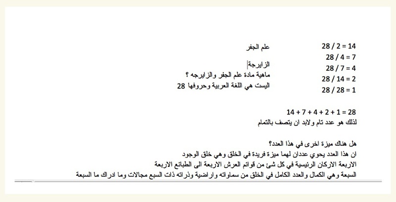 It's a 'science' that claims to be about the numbers of letters in the Arabic alphabet: 28 letters, a number of them are from the moon, others