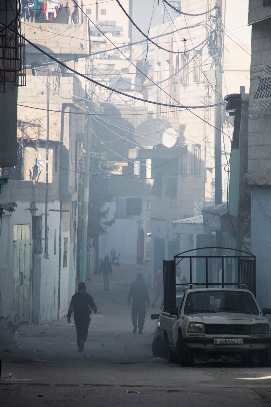 In this photograph I bring to light the suffering of Palestinian refugee camps during the Israeli military incursions manifested by tear gas, the crowdedness and the intense architecture where the refugees live.