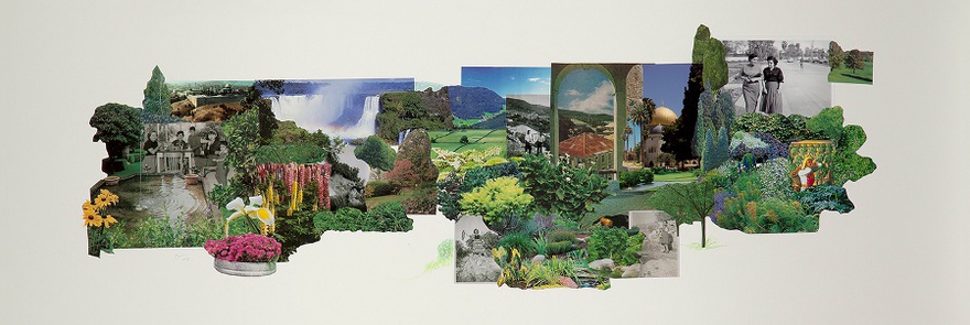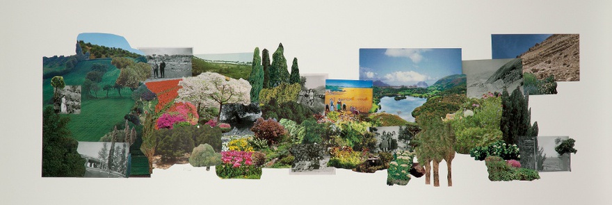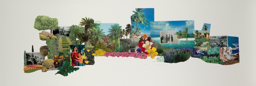As part of this project, Hijawi explores the ways in which Palestine has been represented, recorded and remembered in both visual and oral culture. The collages in Paradise Series borrow from oral narratives, magazines, family photographs, as well as paintings by Palestinian artists from the 1950s. Together, these disparate elements produce an image of a lost, paradisiacal land. The narrative voiced in the accompanying audio further complicates the line between fiction and reality.