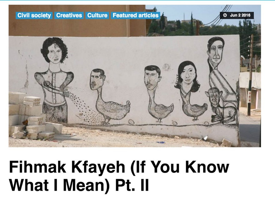 Below I gather the sources, projects, people and platforms that have informed my research and work over the last three years. The reader should be aware that many of the organizations listed are continually morphing, and shifting, new organisations are forming and others are closing. Whether these changes are in terms of art form, or in terms of purpose, they are always keeping up with the pace and opinions of their audience. Artistic responses in the Syrian context come not in the form of shows, opportunities or platforms, but in the minutes and seconds people have to react to the events in their lives.