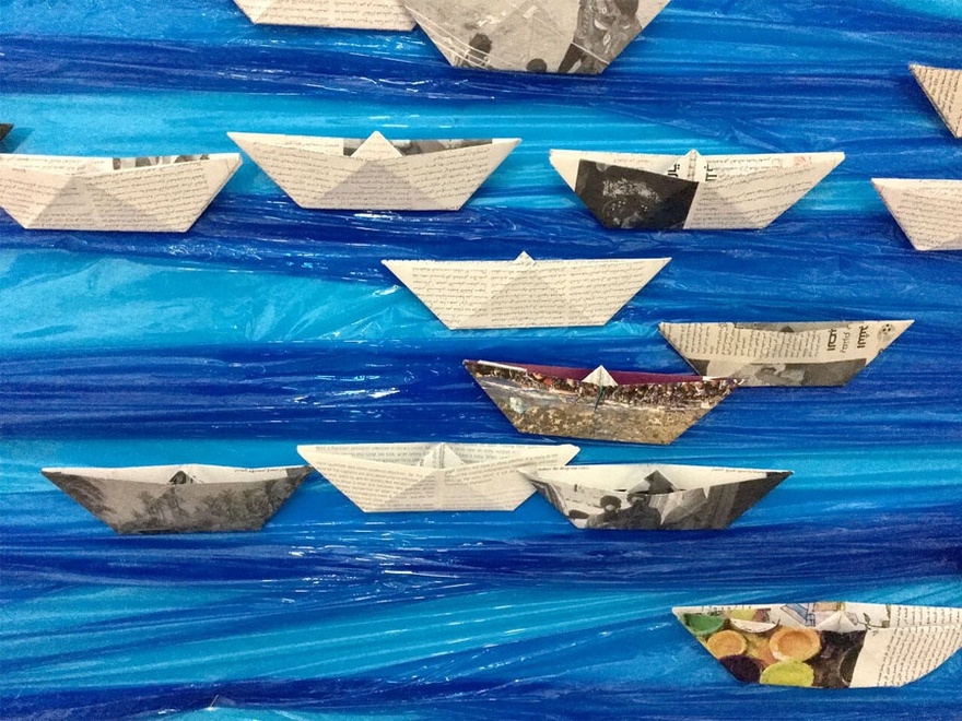 In a place that is besieged, is the sea enough? To escape? Is there enough horizon? What about when the sea has become another limit, where no one can come or leave except with a permit? This artwork is a series of paper boats of different sizes and colours.