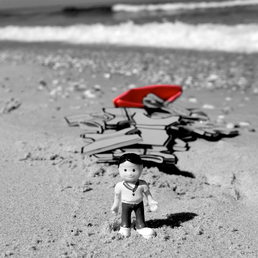 My artwork was inspired by the stories of young migrants who have tried to leave Gaza by sea, and who are willing to travel thousands of miles in search of a better life and dignity. They leave on a one-way trip to face the rough sea with hopes of escaping a difficult reality. Some of them make it, some die, and some lose their family members, and their dreams become nightmares that haunt them for the rest of their lives.