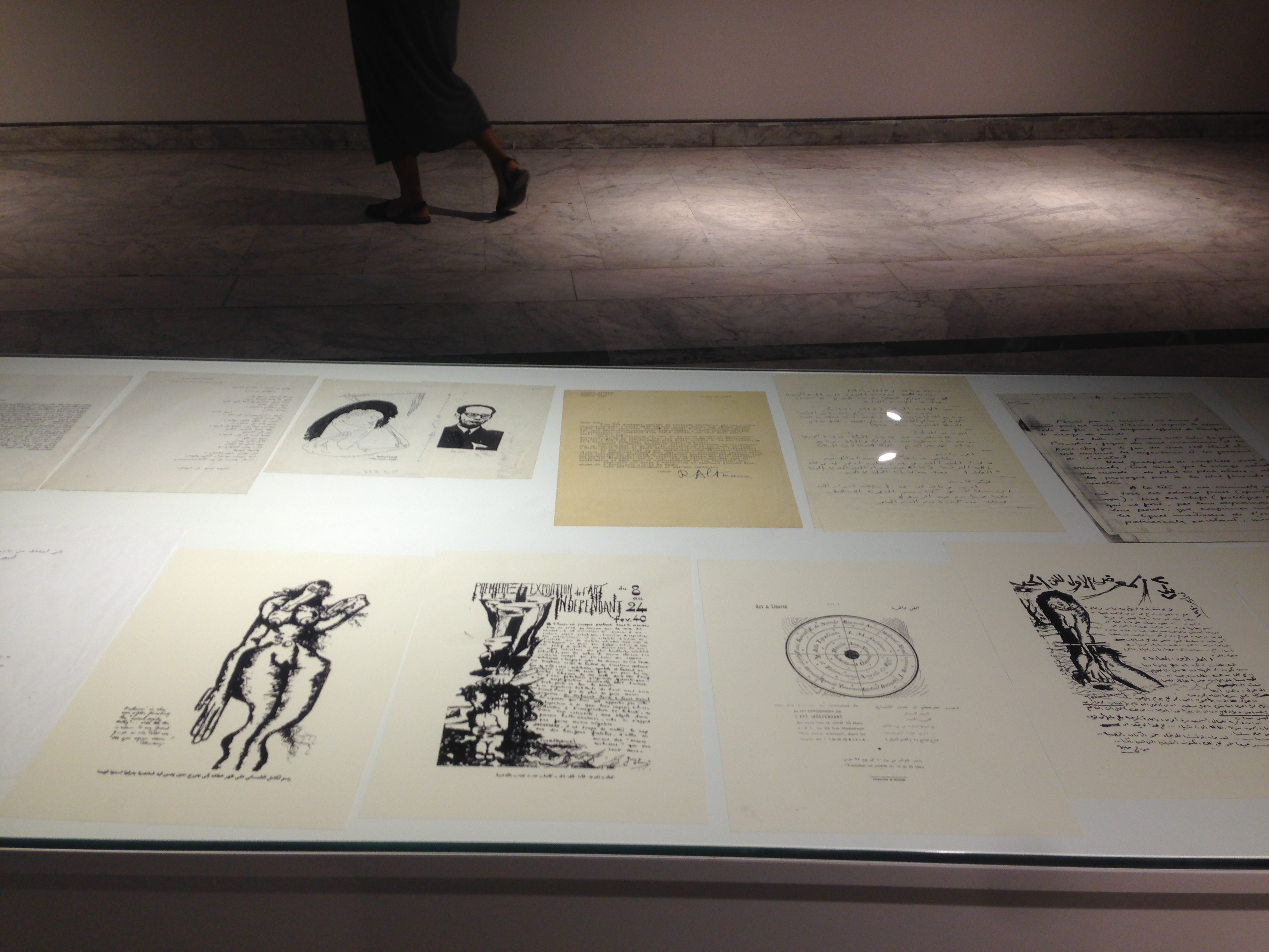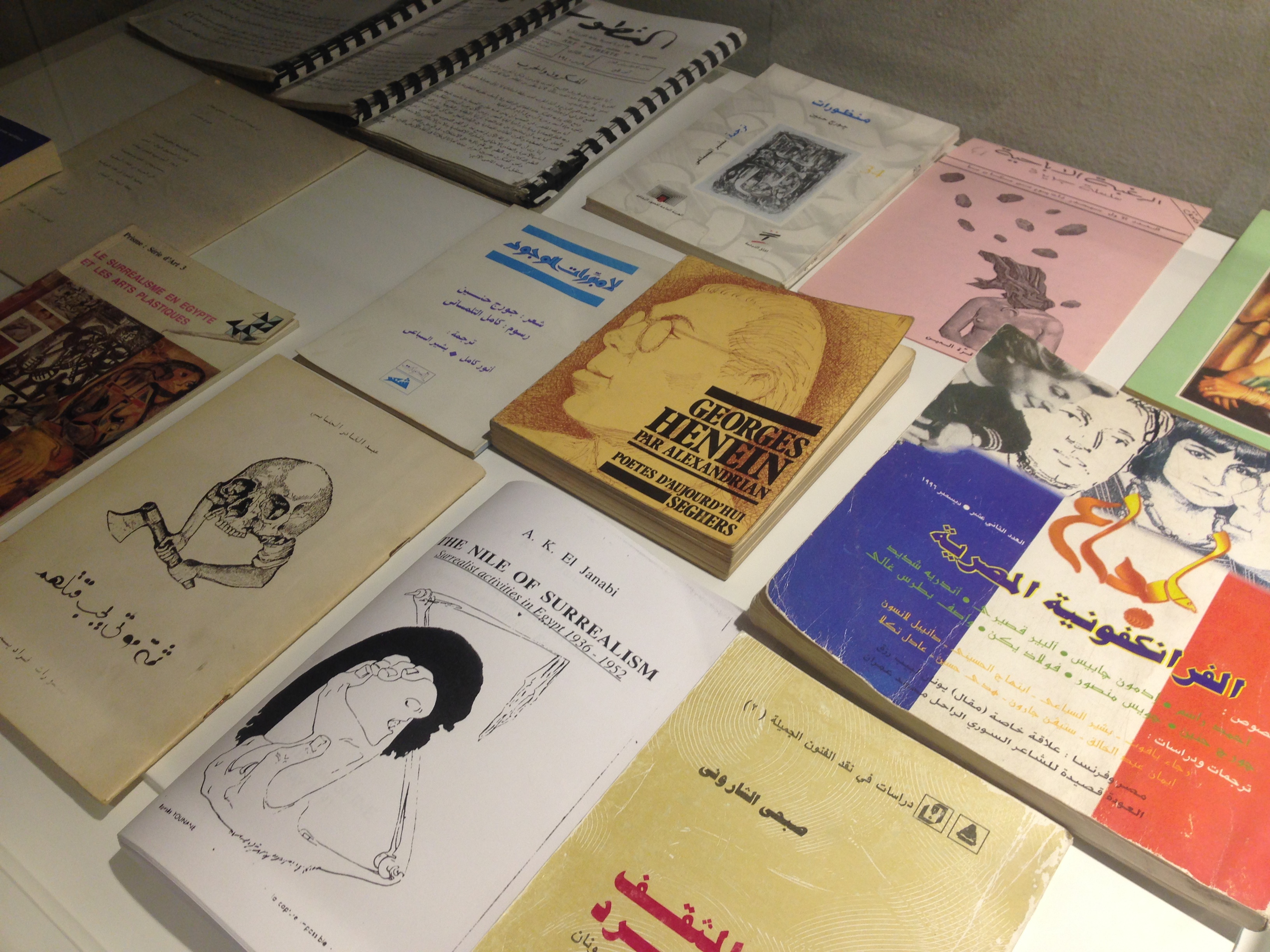 Indeed, even if there was one room dedicated to archives and documentation, with a wall text that sought to position the display within Egypt's wider socio-political context, the overcrowded display cases and un-translated, context-less documents, became merely stuff; it did not give a sense of how much work the researchers and curators had invested thus far.[1] This may have been resolved by the inclusion of a comprehensive timeline on the wall to help situate the original research, beginning with 'The Cairo School in Cairo' in 1908 and ending with the 'Passing of Georges Henein in Paris' in 1973.