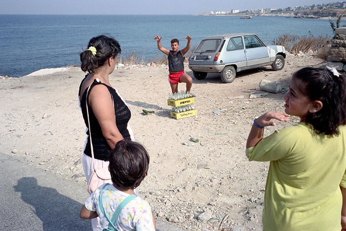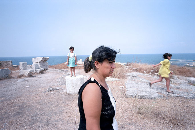 Roberte and her daughters among ancient ruins from Before Christ on the shores of the town of Jbeil.
